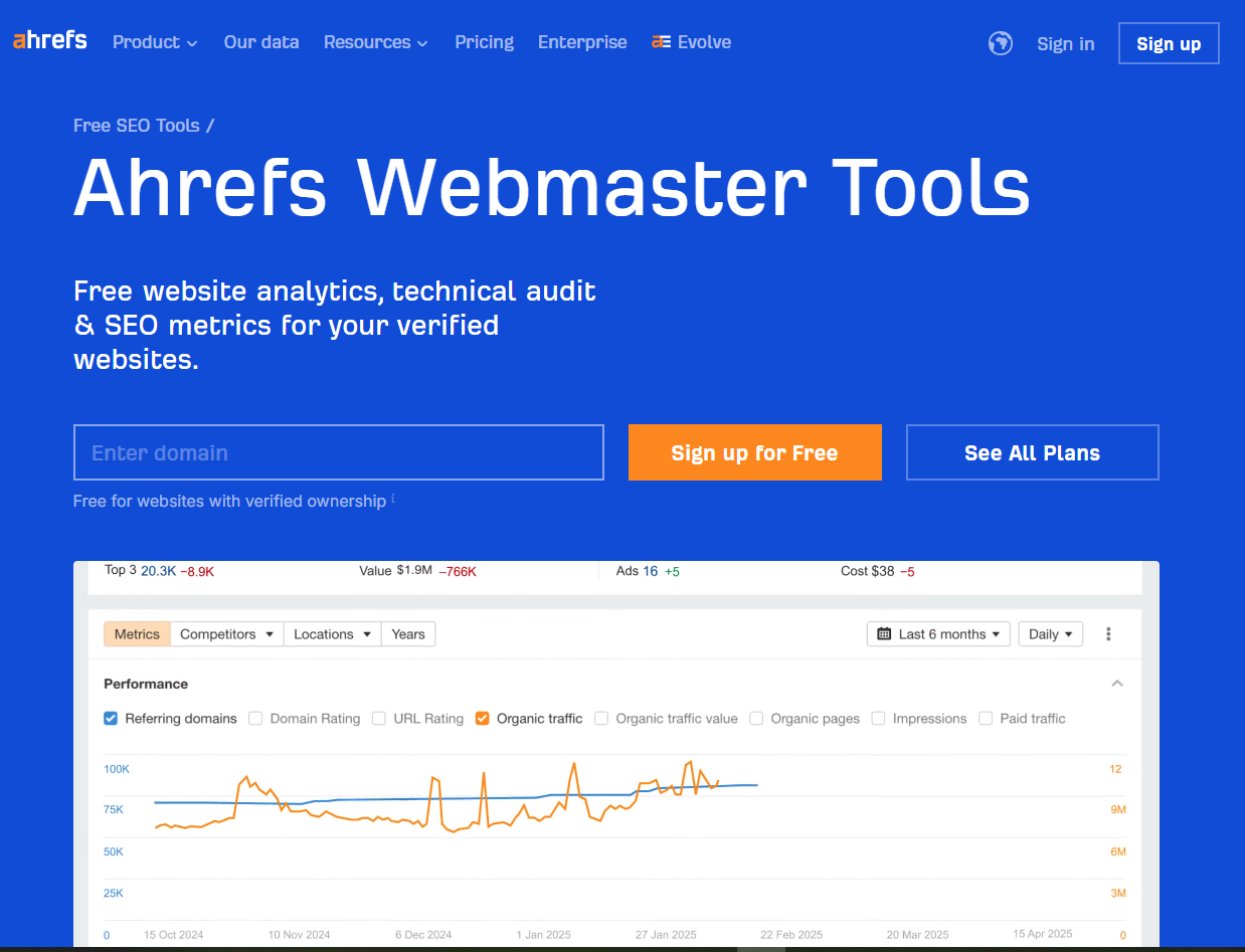 Tích hợp thêm Ahrefs Webmaster Tools để theo dõi backlink & lỗi SEO.