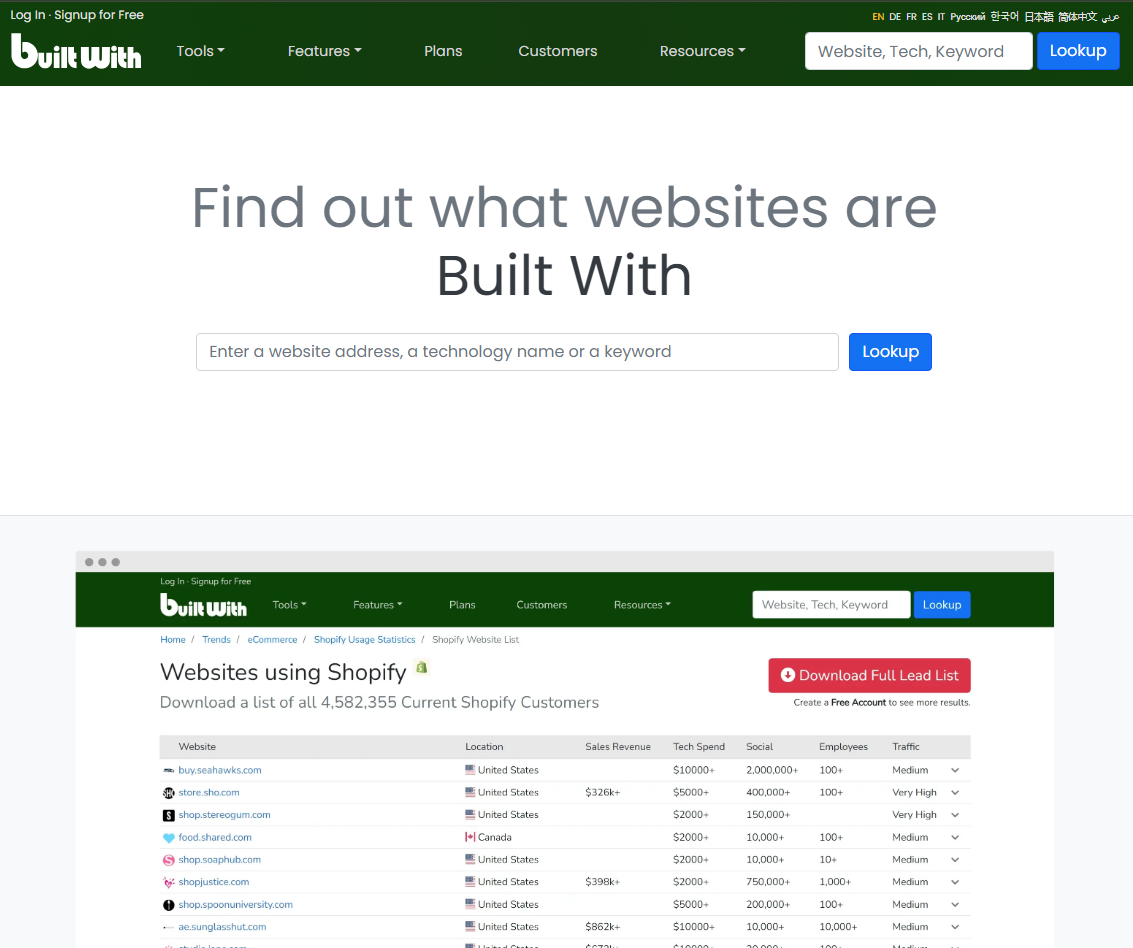 Hiển thị: Website dùng CMS gì? Hosting nào? CDN nào? Framework nào? Dùng Google Analytics không?