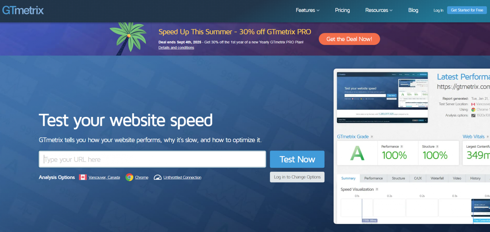 Tốc độ, hiệu năng | PageSpeed Insights, GTMetrix |